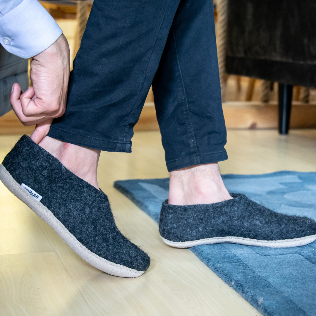 Charcoal Grey Handmade Wool Felt Indoor Slipper with Leather Sole